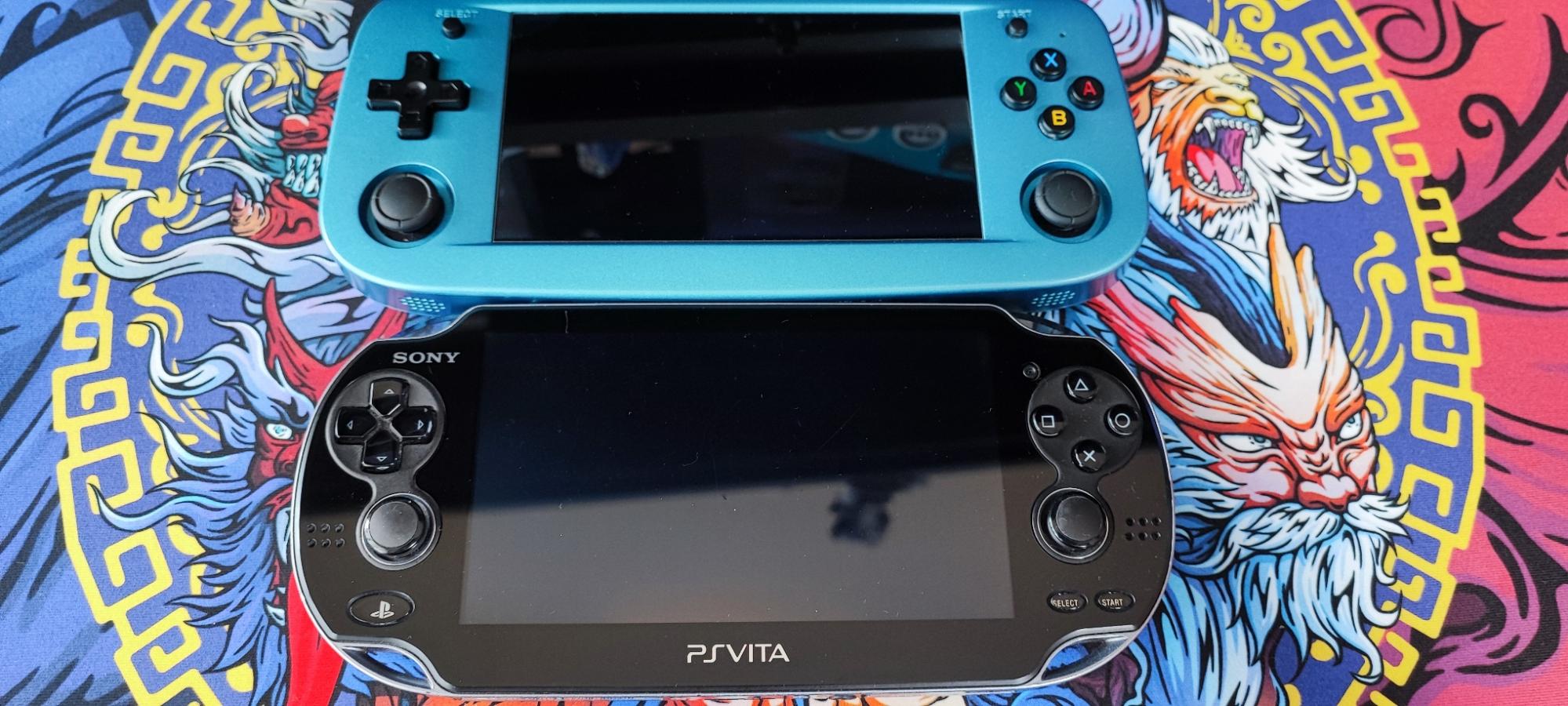 Anbernic RG503の大きさと重さを画面仕様が近いPS Vita-1000と比較してみます。